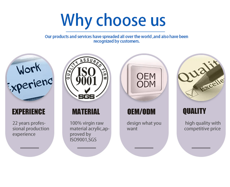 * Notre introduction continue d'équipements et de technologies de pointe pour le traitement de l'acrylique, l'amélioration continue du niveau de savoir-faire en matière d'acrylique, l'outillage avancé, le moulage, la gravure informatique tridimensionnelle, la gravure laser, la découpe laser, la découpe, le profilage, le collage, le pliage, le polissage, la sérigraphie, la peinture, tels que des équipements et des technologies de production entièrement professionnels.