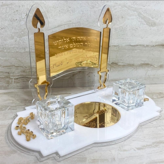 Apportez élégance et sens à votre rituel d'allumage des bougies du sabbat avec ce magnifique plateau porte-bougie en acrylique. Fabriqué en acrylique de première qualité et gravé au laser avec précision, il porte la bénédiction traditionnelle en hébreu, ainsi qu'un prénom personnalisé de votre choix. Sa finition moderne effet miroir apporte une touche d'élégance à votre intérieur et à votre table.