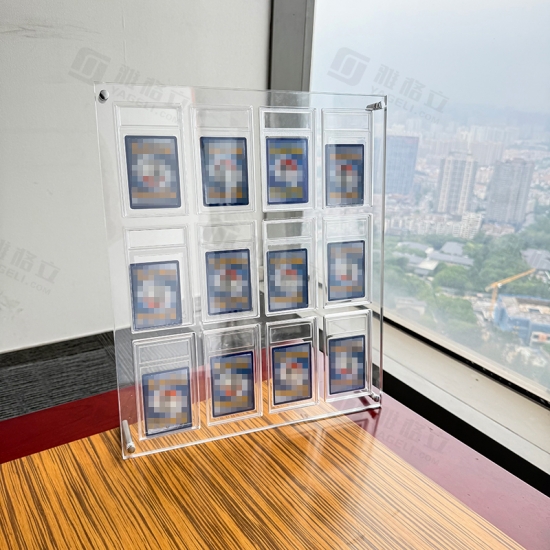 Fabriqué en acrylique haute transparence, il garantit une visibilité optimale de chaque carte, mettant en valeur les détails et la beauté de vos cartes PSA12. Le support est fourni avec des ferrures métalliques pour un montage facile, garantissant stabilité et durabilité. Que vous soyez un collectionneur de cartes averti ou que vous souhaitiez simplement exposer vos précieuses cartes PSA12, ce présentoir offre à la fois protection et présentation attrayante.