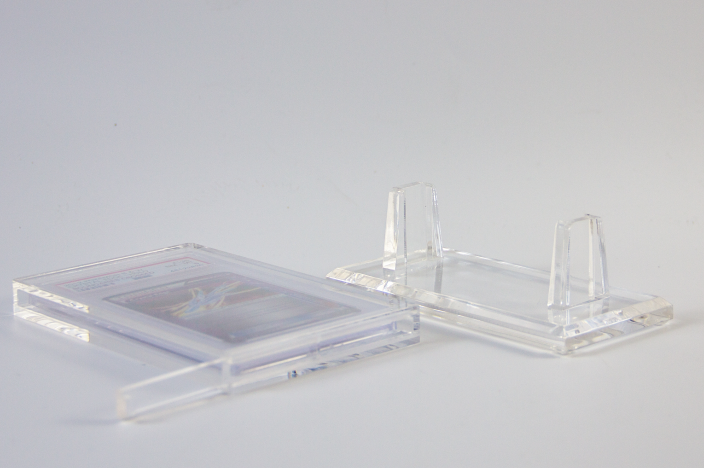 La fonction principale de ce présentoir en acrylique est de mettre en valeur les capsules de cartes à collectionner certifiées : il maintient la capsule en toute sécurité, surélevée et inclinée, afin d’optimiser la visibilité de l’illustration et des informations de certification (par exemple, les détails de l’étiquette PSA). Il sert également d’accessoire de protection, maintenant la capsule à la verticale et à l’écart des autres objets pour éviter les rayures et les dommages, tout en permettant d’organiser les précieuses cartes certifiées de manière soignée, prêtes à être exposées sur des étagères, des bureaux ou dans des vitrines.
