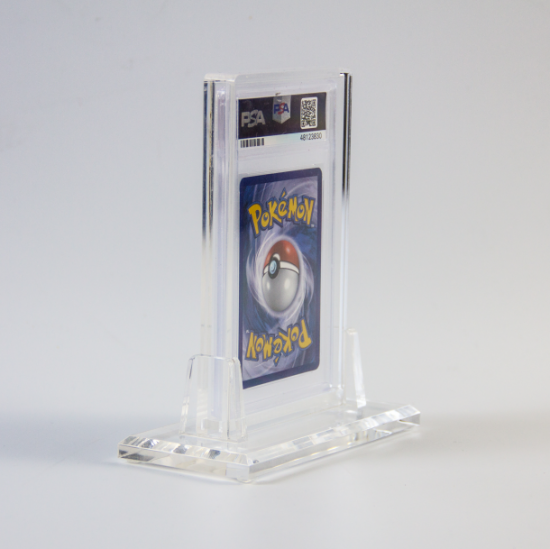 Fabriqué en acrylique résistant aux rayures, ce présentoir offre un support durable et une protection optimale aux cartes certifiées (prévenant les éraflures et les petits chocs sur les bords). Son design incliné assure une visibilité parfaite du recto de la carte (et de son étiquette de certification) à une hauteur de vision confortable, contrairement aux présentoirs plats. Transparent et minimaliste, il met en valeur la carte certifiée tout en apportant une touche d'élégance et de professionnalisme à toute collection. Sa base stable empêche tout basculement, même sur les surfaces irrégulières, pour une présentation fiable et attrayante.