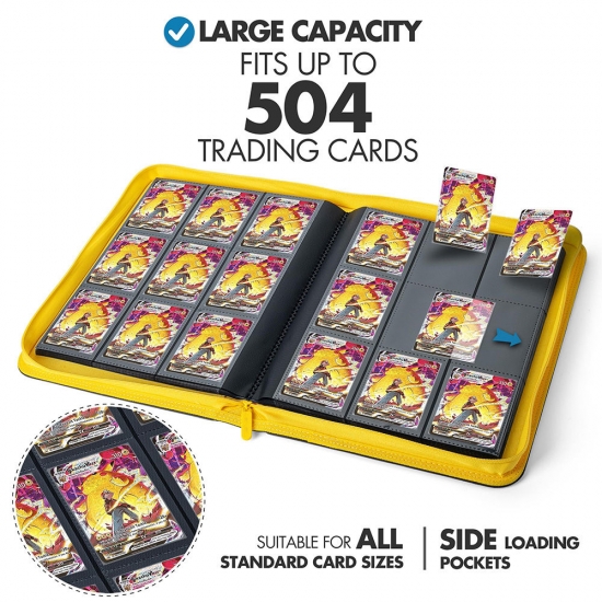 Notre classeur personnalisé à 9 pochettes est conçu pour les collectionneurs avertis et les grands détaillants qui recherchent un rangement fiable et prêt à exposer. Chaque classeur est doté de couvertures renforcées et de pages à 9 pochettes de qualité supérieure, sans acide, pour ranger jusqu'à 504 cartes en toute sécurité, sans risque de glissement de la pochette. Son ouverture latérale assure la sécurité des cartes pendant le transport et l'exposition : idéal pour les collections Yu-Gi-Oh, Pokémon, cartes de sport et autres jeux de cartes à collectionner.