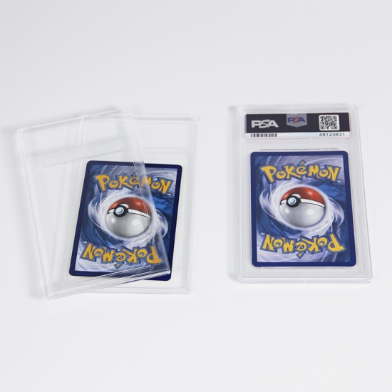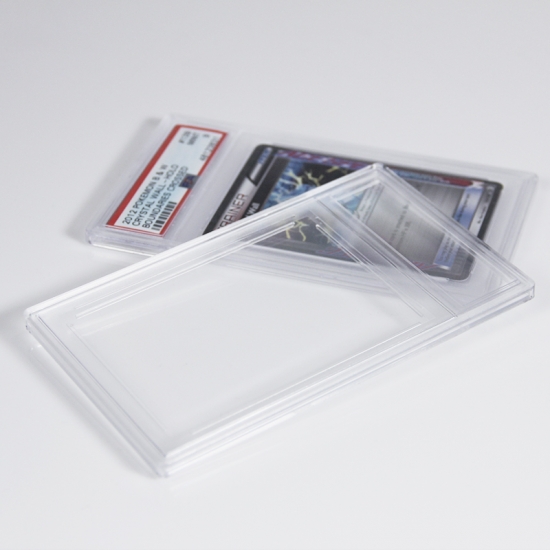 La fonction principale de cet étui en acrylique est de protéger les capsules de cartes à collectionner certifiées : il fait office de barrière contre les agressions extérieures (poussière, rayures, petits chocs) afin de préserver l’état de la capsule et la valeur de collection de la carte. Il sert également d’accessoire de présentation, permettant de mettre en valeur la capsule et de la conserver intacte, tout en offrant la possibilité d’exposer les cartes certifiées sur des étagères, des présentoirs ou dans des boîtes de rangement sans compromettre leur protection. De plus, il simplifie la manipulation des capsules précieuses en réduisant le contact direct avec la carte elle-même.