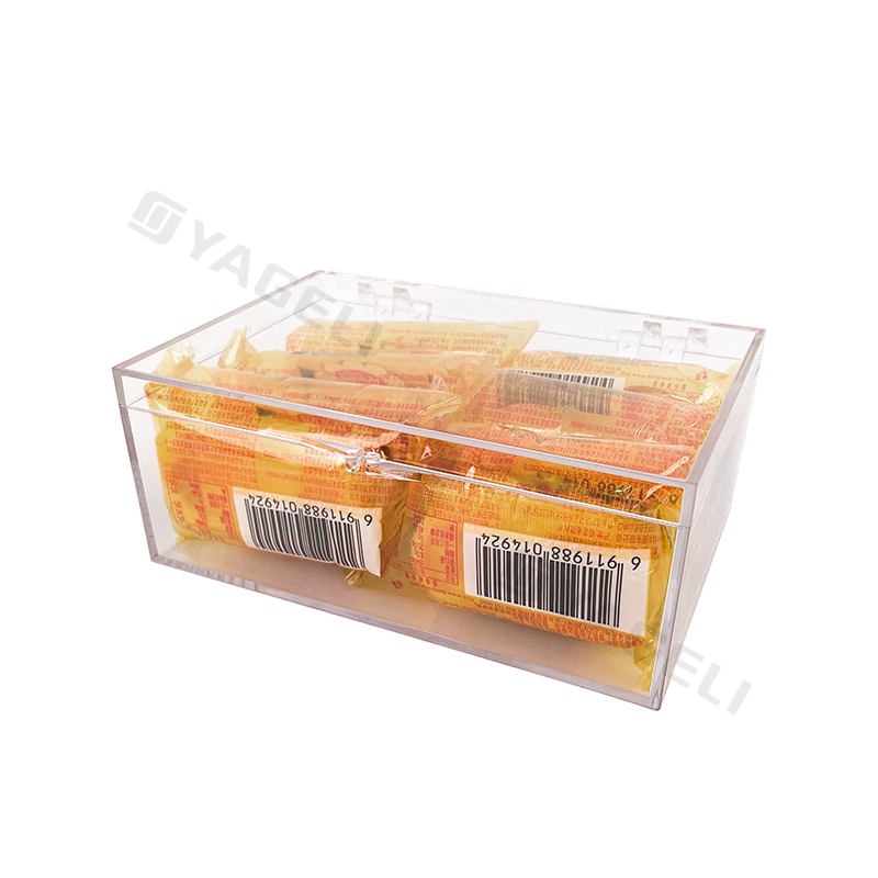 Sa forme rectangulaire optimise l'espace de rangement tout en conservant un style moderne et minimaliste qui s'harmonise avec tous les intérieurs, qu'il s'agisse d'une maison ou d'un commerce. Cette boîte de rangement pour les en-cas se distingue par sa construction entièrement transparente en acrylique, permettant une visibilité facile du contenu sans ouvrir le couvercle, tandis que son matériau robuste résiste aux rayures et aux chocs pour une utilisation à long terme.