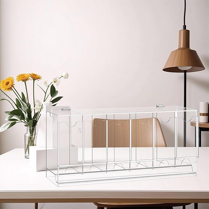 La structure ouverte du distributeur assure un accès facile au contenu, tandis que sa construction transparente permet une visibilité complète des articles dans chaque emplacement, ce qui le rend adapté aussi bien à l'organisation de collections personnelles qu'à la présentation de produits en magasin.