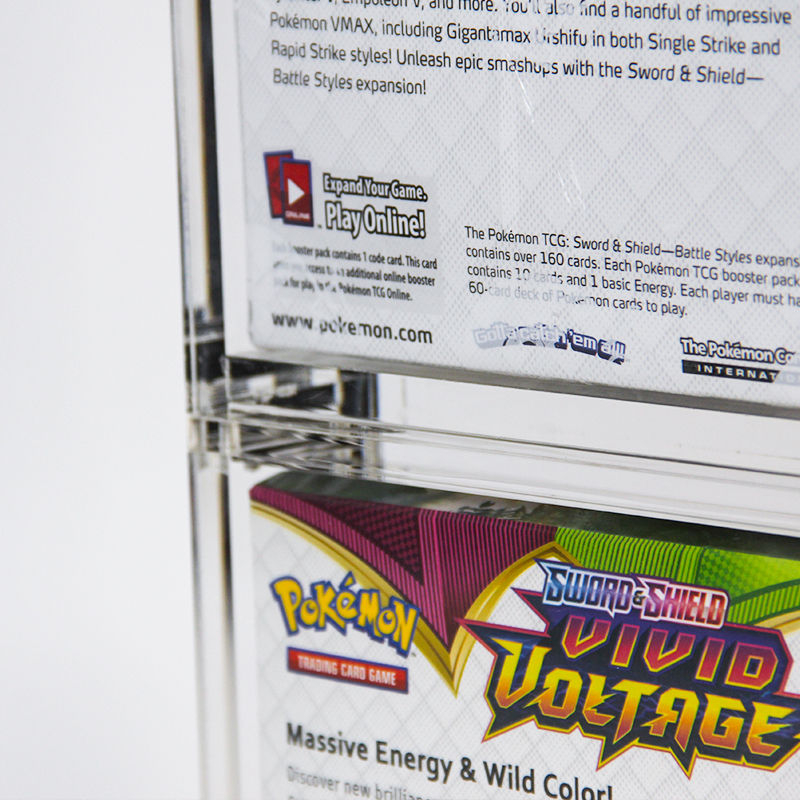 Fabriqué en acrylique de haute qualité résistant aux rayures, ce protège-boîtes empilable offre une durabilité exceptionnelle et protège efficacement vos boosters de la poussière, des rayures et des petits chocs. Sa transparence préserve la visibilité des illustrations tout en gardant leur contenu impeccable, et sa structure empilable optimise le rangement, permettant ainsi de créer une présentation soignée et esthétique de plusieurs boosters. Contrairement aux modèles en plastique fragile, il conserve sa stabilité même empilé, alliant protection pratique et présentation élégante et professionnelle.