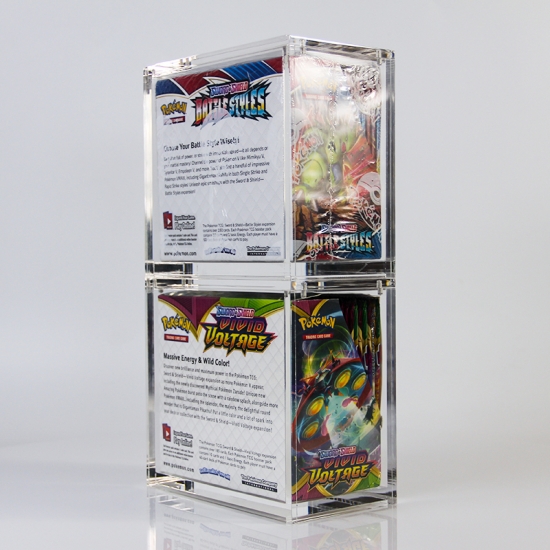 Fabriqué en acrylique transparent et résistant, chaque étui protège efficacement une boîte de boosters tout en mettant en valeur son illustration originale grâce à ses panneaux transparents ; plusieurs unités peuvent être empilées verticalement pour organiser et exposer les collections sans prendre de place inutilement, ce qui le rend idéal pour les collectionneurs de JCC, les détaillants ou les passionnés qui cherchent à protéger et à exposer leurs coffrets de boosters.