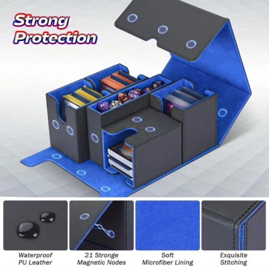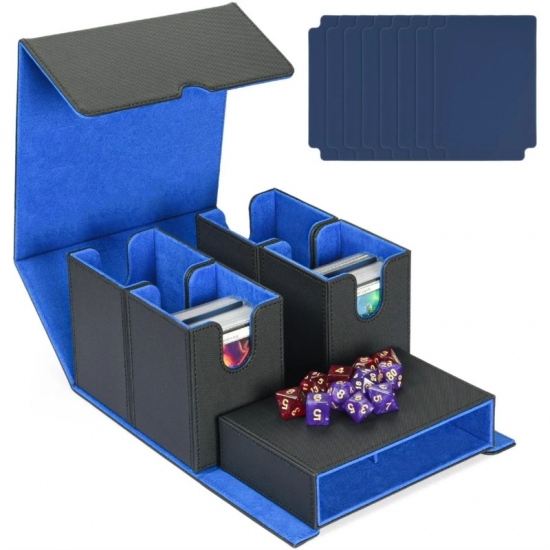 Boîte de rangement de jeu de cartes avec plateau à dés pour MTG YugiOh, ensemble 5 en 1 pouvant contenir plus de 400 cartes à pochettes, boîte de rangement de cartes à aimant puissant compatible avec les cartes Magic Commander TCG CCG