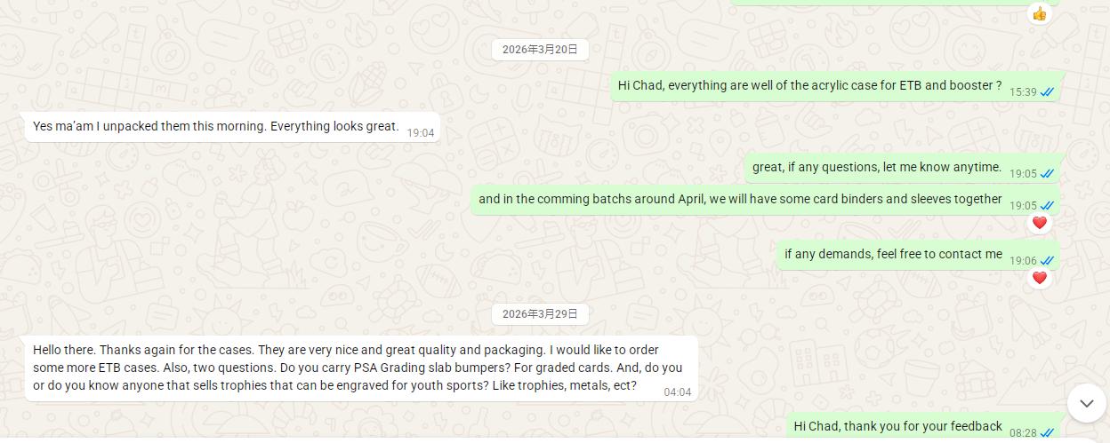 ANHUI YAGELI DISPLAY CO., LTD est un fabricant chinois expérimenté, spécialisé dans les supports et présentoirs pour cartes gradées. L'entreprise produit des supports, des étuis, des cadres en bois et des pochettes de protection pour cartes gradées, et propose des services de personnalisation OEM et ODM pour les marques et les marchés de collection du monde entier.