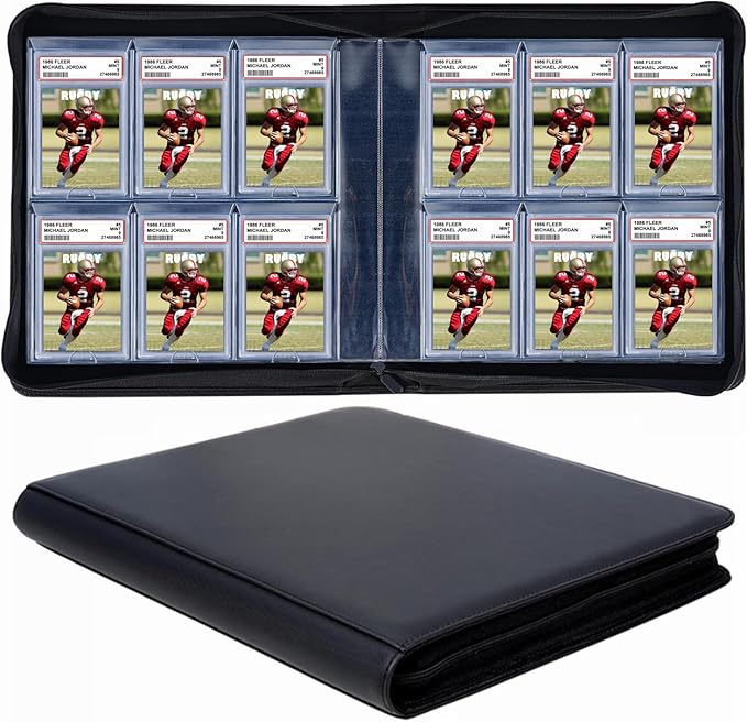La fermeture éclair intégrale protège efficacement contre la poussière, l'humidité et les débris, tandis que la reliure intérieure robuste garantit la tenue du classeur même lorsqu'il est plein : idéal pour transporter ou exposer des cartes de sport, des cartes à collectionner ou des cartes à jouer. Léger et résistant, ce classeur allie portabilité et protection, ce qui le rend parfait pour les collectionneurs occasionnels comme pour les passionnés qui gèrent leurs collections de cartes certifiées PSA.