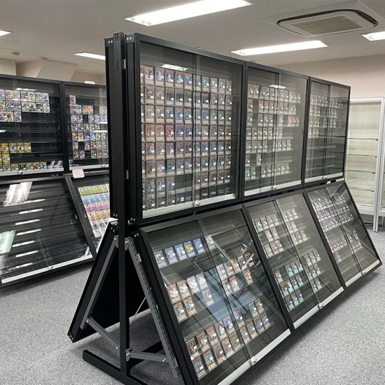 Pour les acheteurs B2B du secteur des cartes à collectionner de jeux de cartes à collectionner de sport et de jeux de cartes à collectionner, des chaînes de magasins de loisirs créatifs aux distributeurs, notre présentoir de sol verrouillable en métal et acrylique pour cartes Pokémon de jeux de cartes à collectionner relève le défi principal de la présentation de cartes de format standard (63 x 88 mm) tout en garantissant sécurité et durabilité. En tant que fabricant de présentoirs, nous comprenons que les solutions de présentation prêtes à l'emploi doivent concilier esthétique et praticité. C'est pourquoi ce présentoir associe une structure en acier épais (résistant à la flexion dans les magasins à forte fréquentation) à des étagères en acrylique haute transparence, permettant aux clients de visualiser clairement les cartes sans compromettre leur robustesse.